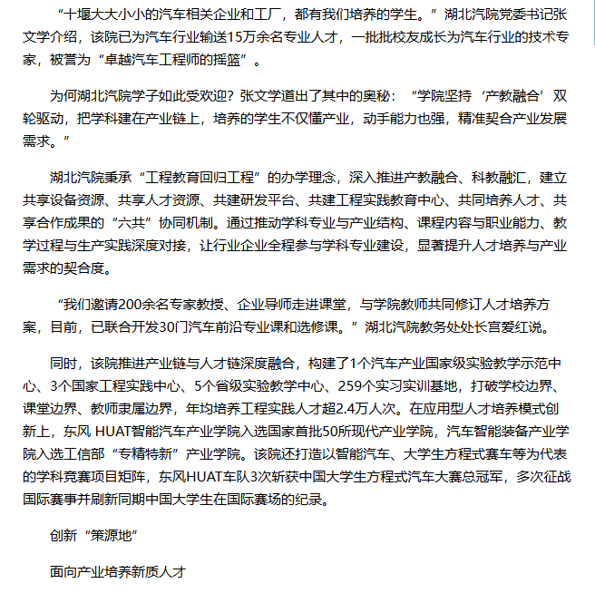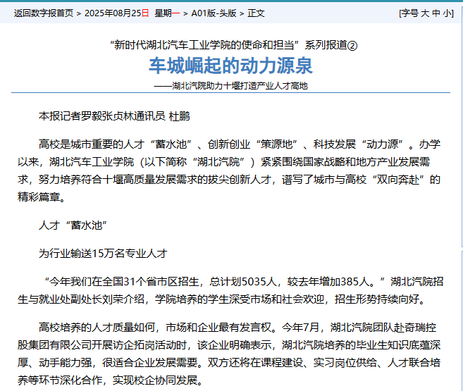 车城崛起的动力源泉——湖北汽院助力十堰打造产业人才高地
